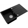 Granitový dřez s odkapem, provedení Černá metalická, otočný, rozměr 760 x 440 mm, vana 330 x 380 x 170 mm, horní nebo spodní montáž, minimálně 45 cm skříňka, s excentrem, 2 otvory z výroby.